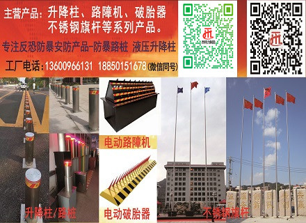 本公司是一家集研發(fā)、設計、生產、銷售于一體的企業,主營產品有:不銹鋼旗桿,升降柱,路障機,破胎器,崗亭,監(jiān)控桿,拒馬等系列產品。創(chuàng)新的產品開發(fā)理念,不斷提升的技術優(yōu)勢,生產制造工藝,規(guī)模化的生產能力,使廈門杰特力廣泛贏得客戶的合作與信賴。